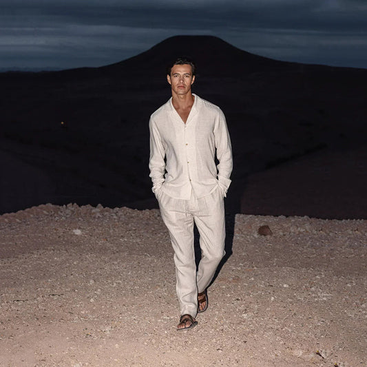 Minimalistisches zweiteiliges Set aus Baumwolle und Leinen für Männer