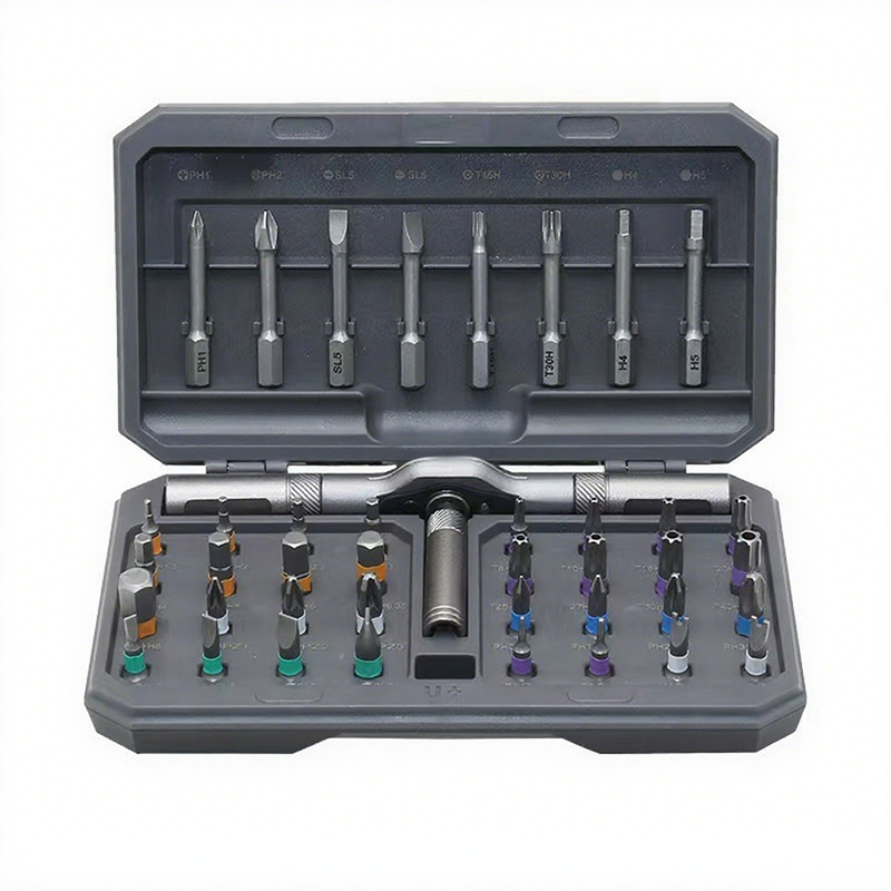 Mehrzweck-Ratschensatz: Dieser Ratschenschraubendreher wird mit 24 unterschiedlich geformten Schraubendreherbits geliefert: Kreuzschlitz (PH1, PH2, PH3); Schlitz (SL4, SL5, SL6); Pozidriv (PZ2); Torx (T5, T6, T8, T10, T15, T20, T25, T27); Sechskant (H1,5, H2, H2,5, H3, H4, H5, H6, H6,35, H8); deckt im Wesentlichen die üblichen Schraubenspezifikationen für die meisten Haushaltsgeräte ab. Und die unterschiedlich farbcodierten Ringe machen es einfach, den richtigen auszuwählen.