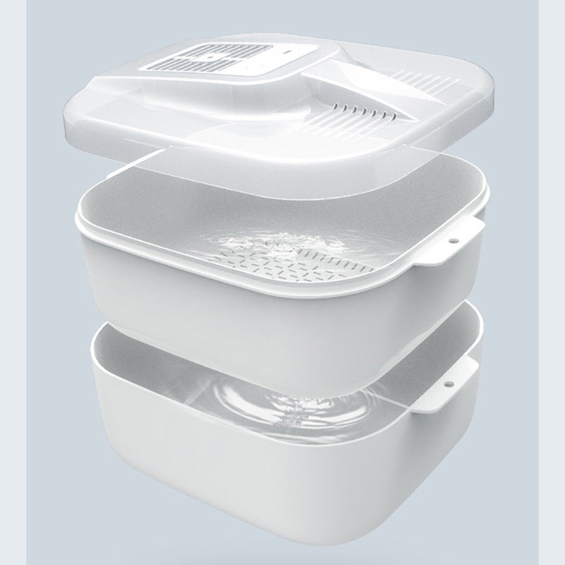 Wir stellen Ihnen unseren 4-in-1-Defroster vor, ein vielseitiges und unverzichtbares Küchengerät, das das Auftauen, Sterilisieren und Abtropfen vereinfacht und gleichzeitig dafür sorgt, dass Ihre Lebensmittel sicher und lecker bleiben. Dieser innovative Küchenbegleiter wurde entwickelt, um Ihnen Zeit, Mühe und Platz zu sparen und die Zubereitung von Mahlzeiten zum Kinderspiel zu machen. Verabschieden Sie sich von der Mühe, Ihre Lebensmittel getrennt aufzutauen und zu sterilisieren, und nutzen Sie eine bequemere und hygienischere Art, mit Ihren Lebensmitteln umzugehen.