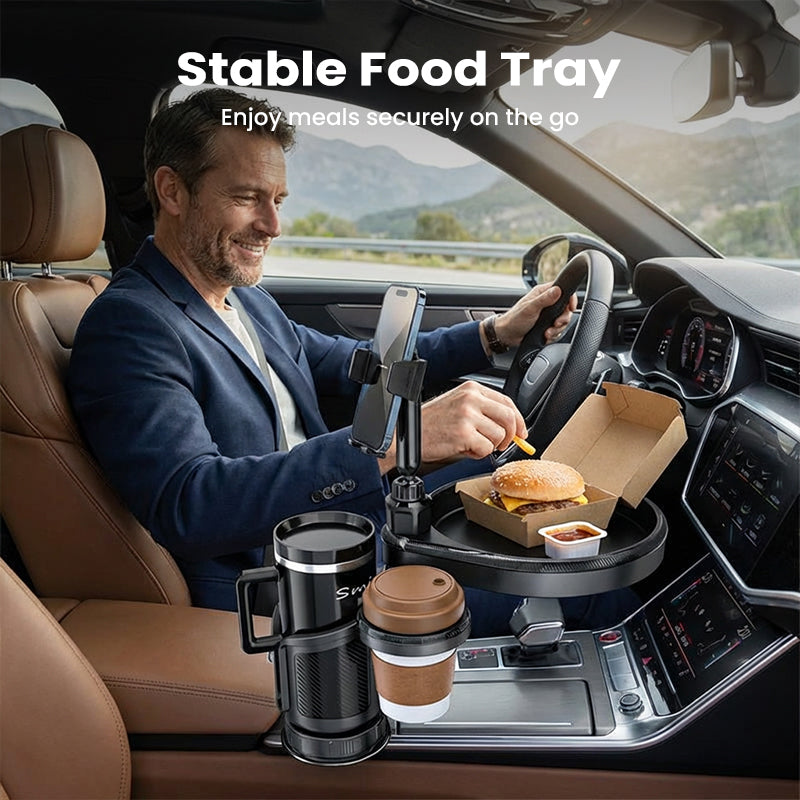4-IN-1 MULTIFUNKTIONSDESIGN - Dieses vielseitige 4-in-1-Gerät kombiniert Becherhalter, Tablett, Flaschenhalter und Handyhalter. Es spart effizient Platz und hält den Innenraum Ihres Autos ordentlich organisiert, für eine angenehmere Fahrt.