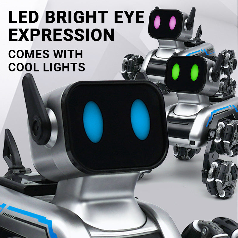- Dieser 8-rädrige Stunt-Roboterhund verfügt über eine Fernbedienungsfunktion, die dynamische Bewegungen wie Sitzen, Liegen, Balancieren auf dem Rücken und Vorwärts-, Rückwärts- und Seitwärtsbewegungen ermöglicht. Seine wendigen Gliedmaßen ermöglichen beeindruckende Tricks und Flexibilität.