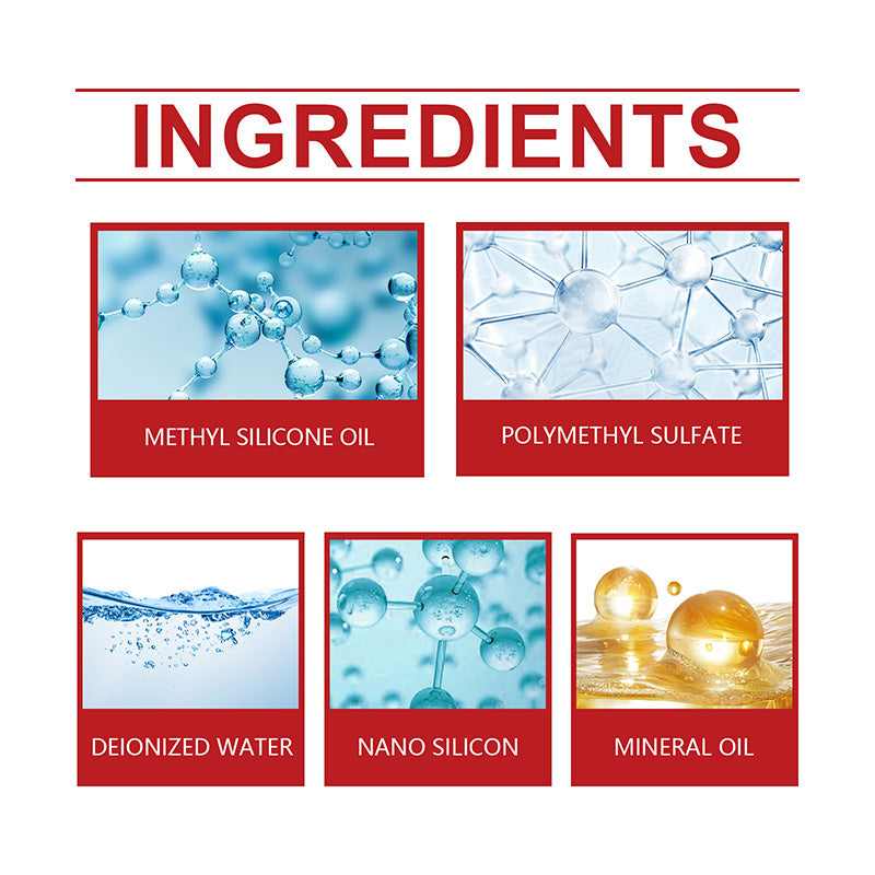 Inhaltsstoffe: Deionisiertes Wasser, Nanosilikon, Methylsilikonöl, Mineralöl Polymethylsulfat