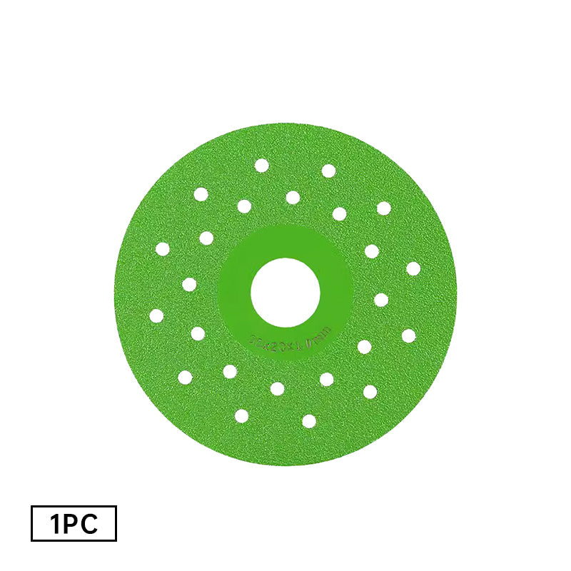 Diese Scheibe ist mit mehreren strategisch platzierten Löchern für eine schnelle Wärmeabfuhr ausgestattet. Sie leiten Schmutz und Wärme effizient ab, während gleichzeitig das Gewicht des Grundmaterials reduziert wird. Das Ergebnis: längere Standzeit, weniger Überhitzung und bessere Schnittqualität!