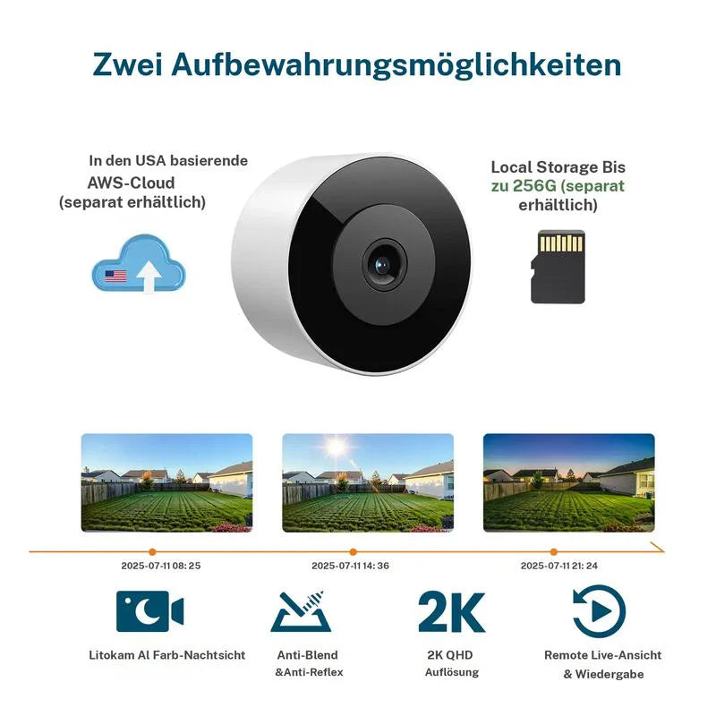 🔥 Kristallklare 2K-Überwachungskamera 🎥 Farbnachtsicht 🌙 24/7-Aufzeichnung und intelligente Alarme 🚨 Einfache Installation! 🔒