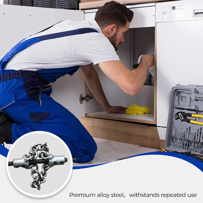 INDUSTRIEKONSTRUKTION: Geschmiedet aus hochwertigem legiertem Stahl, der wiederholtem Gebrauch standhält. Das korrosionsbeständige Material behält seine strukturelle Integrität auch beim Durchdrehen durch scharfe Rohrbögen oder starke Verstopfungen.