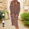 🍂Herbst-Specials🍂 Elegant V-Neck Striped Split Hem Dress