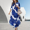 Paket enthalten: 1*Blumig bedrucktes langärmeliges Maxikleid mit Kragen Flip