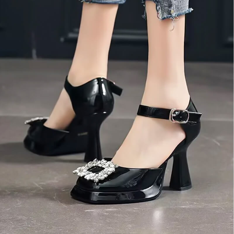 Kleiner französischer Strass-High-Heel mit quadratischer Zehe