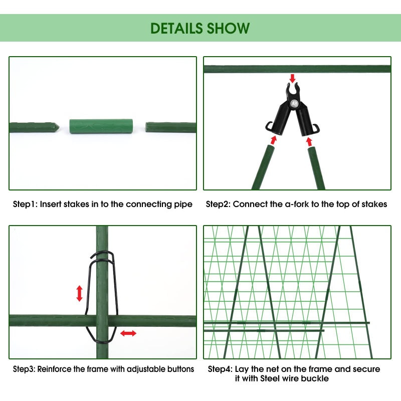 EINFACHE, WERKZEUGLOSE MONTAGE – Die einfachen Steckverbinder und das modulare Design ermöglichen einen schnellen Aufbau. Sie können den Rahmen mühelos zusammenbauen und mehrere Sets verbinden, um ein größeres Stützsystem für Ihren Garten zu schaffen.