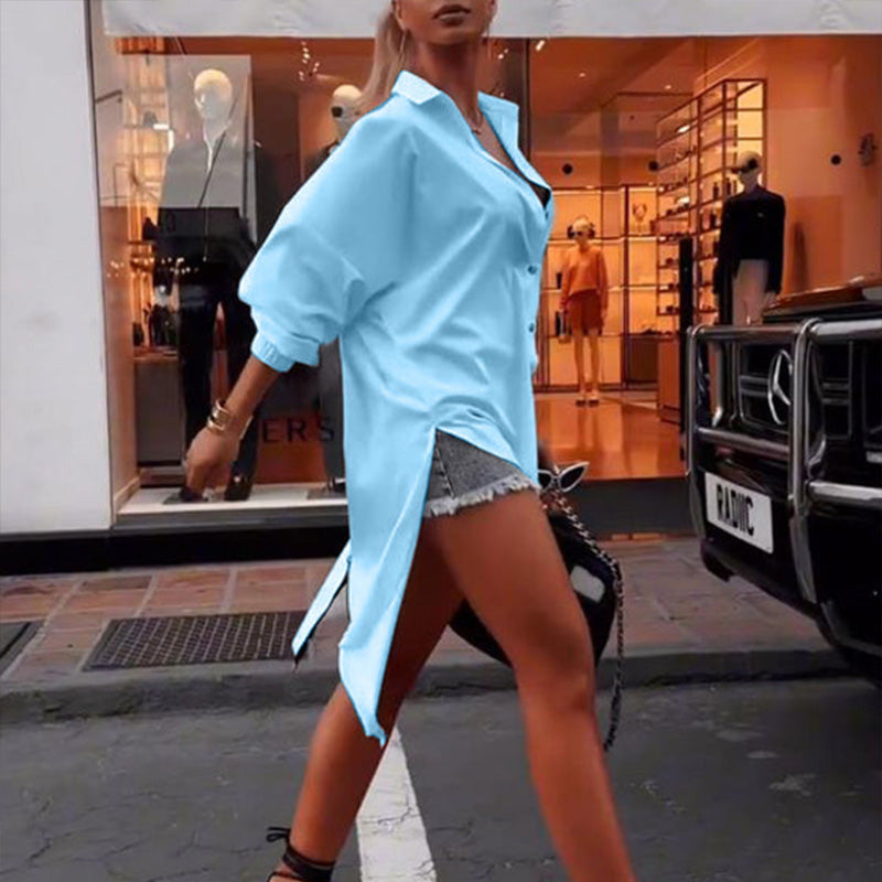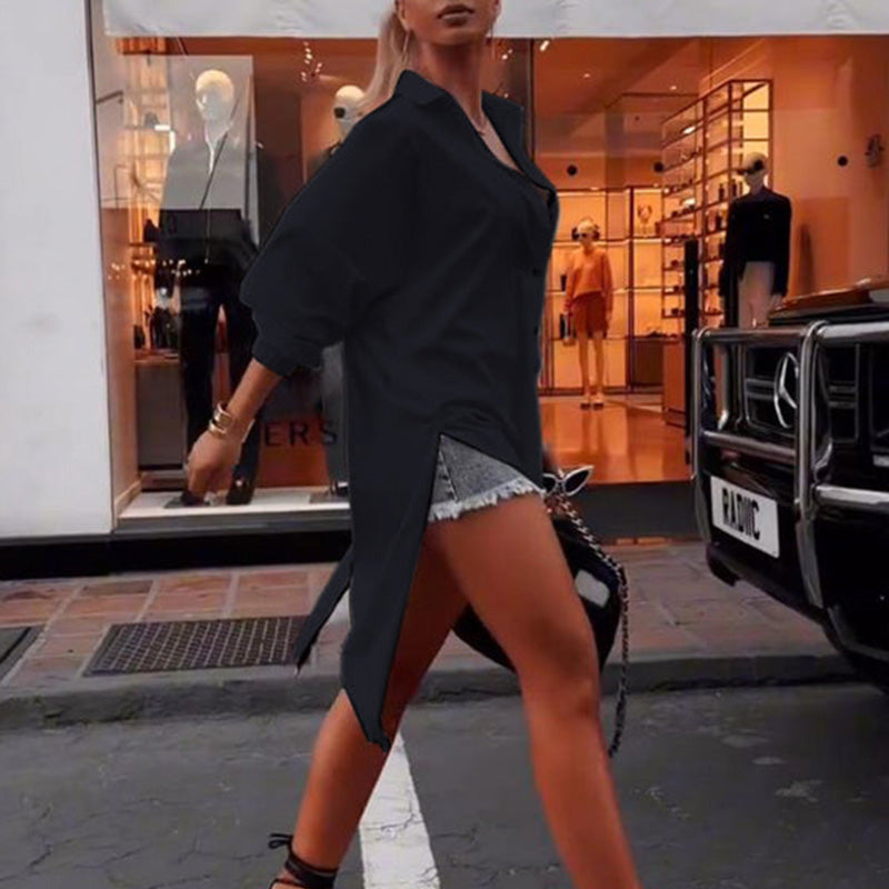 Schlichtes Damenoberteil mit langen Ärmeln und unregelmäßigem Saum