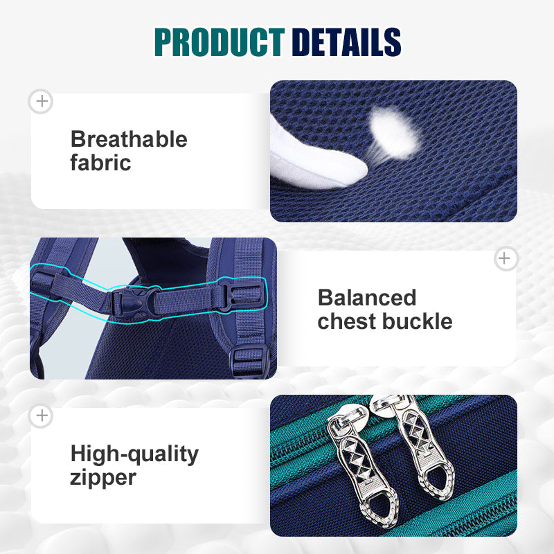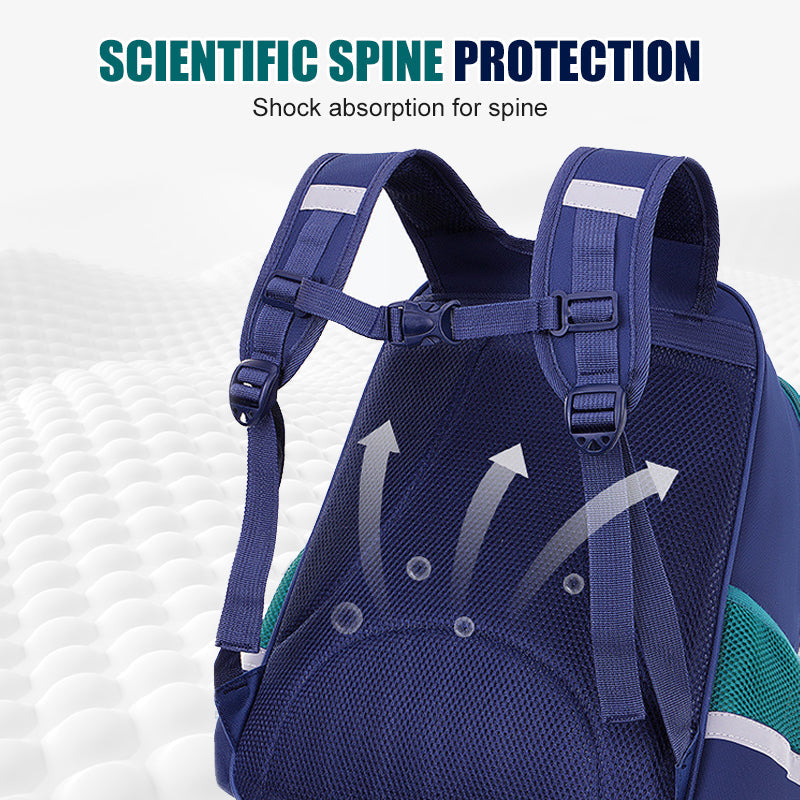 WISSENSCHAFTLICHE RÜCKENSCHUTZ: Der Rucksack hat ein Design, das den Druck an mehreren Stellen reduziert. S-förmige Schultergurte, ein ausbalancierter Brustverschluss und ein hochelastisches Rückenteil wirken zusammen, um Stöße zu dämpfen und den Druck gleichmäßig zu verteilen. Das Wabenmuster auf der Rückseite verbessert die Belüftung, und die dreidimensionale, gepresste, atmungsaktive Rückenstütze leitet Wärme schnell ab, wodurch die Wirbelsäule des Kindes bei längerem Gebrauch gut geschützt ist.