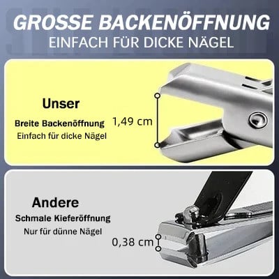 Mit Nagelfänger, der Nägel automatisch einsammeln kann. Sie müssen sich keine Sorgen machen, dass Nagelreste überall hinspritzen, wenn Sie es auf Ihrem Bett oder Sofa verwenden, wodurch Ihr Haus nach dem Nägelschneiden sauber bleibt.