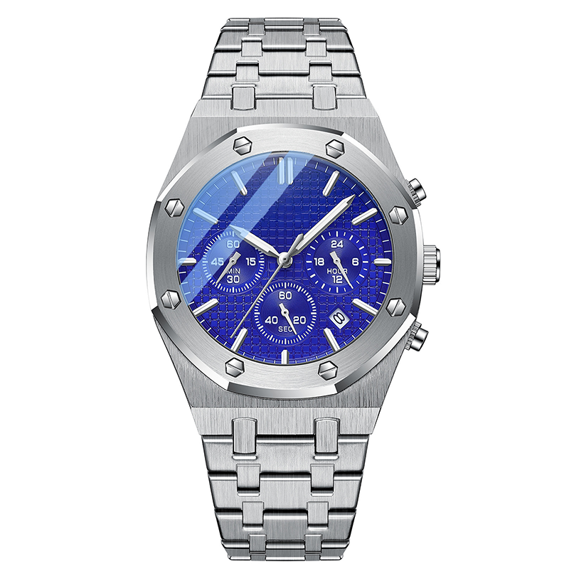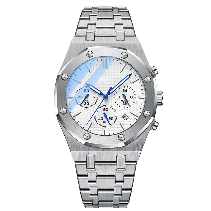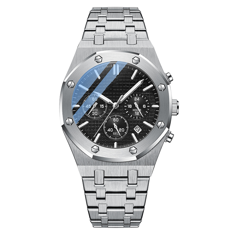 Farbe: Silbernes Gehäuse – Schwarzes Zifferblatt, Silbernes Gehäuse – Weißes Zifferblatt, Silbernes Gehäuse – Blaues Zifferblatt, Schwarzes Gehäuse – Schwarzes Zifferblatt