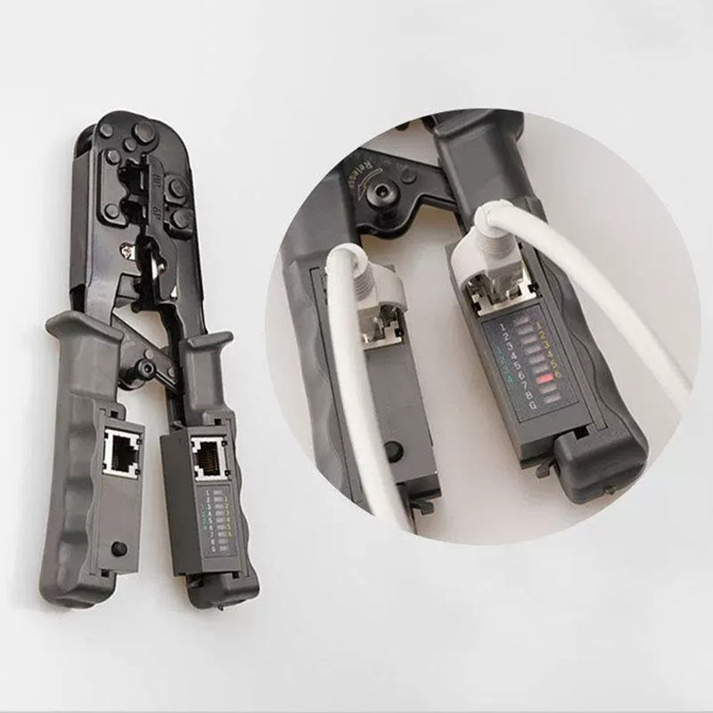 Eingebauter Kabeltester - Betrieben mit AG13/LR44/A76 Knopfbatterie (nicht im Lieferumfang enthalten), mit Anleitung. LED-Leuchte zeigt den Zustand der Kabelverbindung an, testet sowohl UTP- als auch STP-Kabel (RJ45, RJ12, RJ11), LED #1~#8 zeigt 8-polige Kabelkonfiguration an. Sowohl Batterie als auch Tester sind abnehmbar.