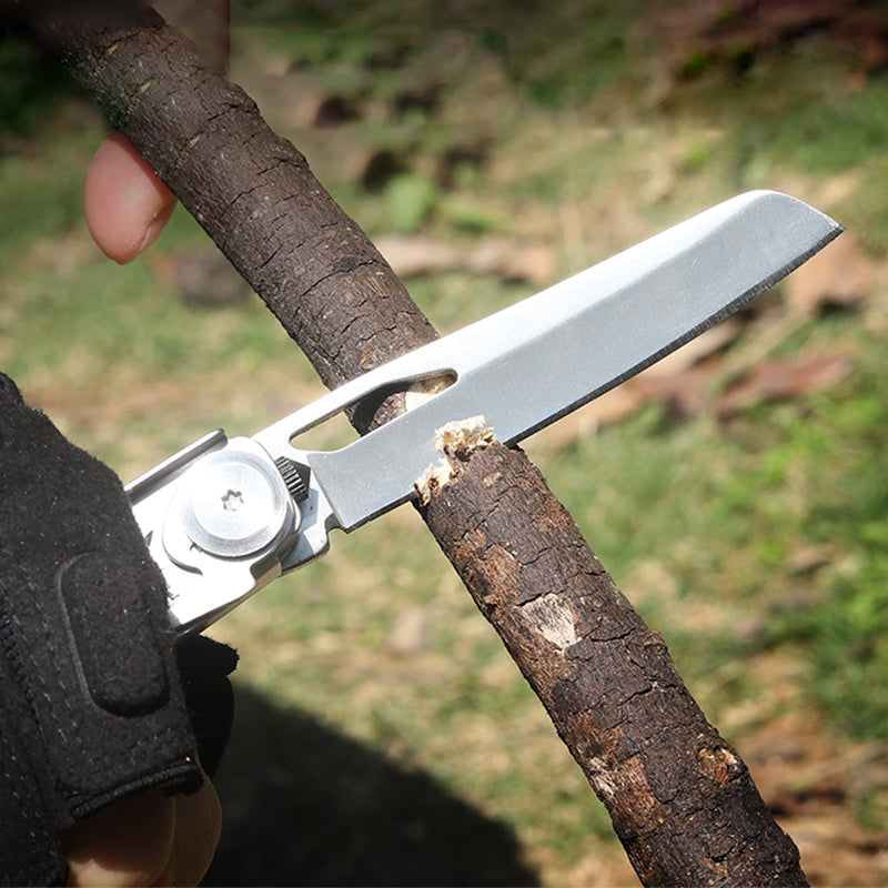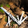 SICHERHEITSMECHANISMEN: Unsere multifunktionalen Klappmesser sind mit Sicherheitsfunktionen ausgestattet, die ein unbeabsichtigtes Öffnen verhindern und einen sicheren Gebrauch gewährleisten. Dazu kann ein Verriegelungsmechanismus gehören, der die Klinge in geöffnetem oder geschlossenem Zustand sicher in Position hält.