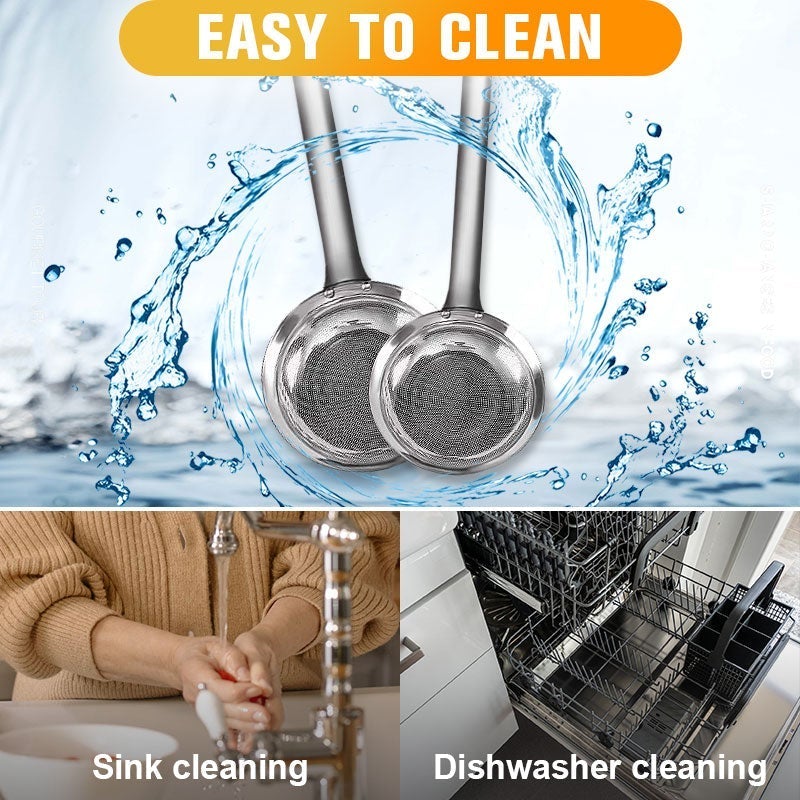 - Durch das feine Filterlochdesign können Ölflecken oder andere kleine Rückstände leicht entfernt werden, wodurch Ihr Essen gesünder wird!