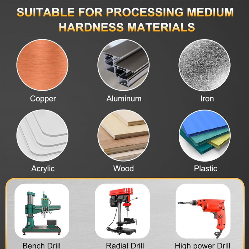 VIELSEITIGE BOHRLEISTUNG: Ideal zum Bohren durch verschiedene Metallmaterialien, einschließlich Formstahl, Aluminiumlegierungen, Gusseisen, Kupfer und verzinkten Rohren. Perfekt für vielfältige industrielle Anwendungen.