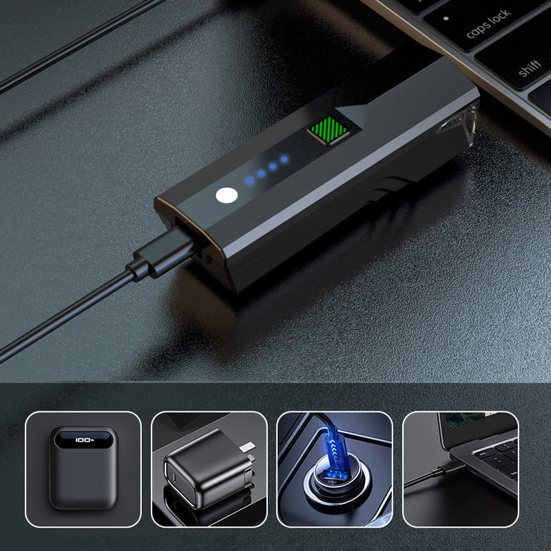 USB-AUFLADBAR UND ECHTZEIT-BATTERIEANZEIGE: Laden Sie Ihre Lampen mühelos mit Typ-C auf. Die Echtzeit-Akkuanzeige informiert Sie über Ihren Energiestand und verhindert unerwartete Ausfälle während der Fahrt.