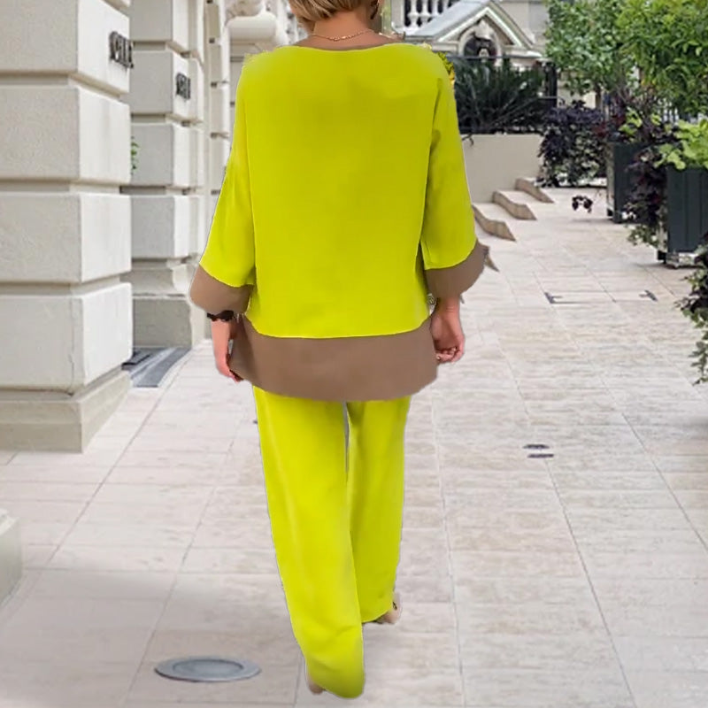Weiches Rundhals-Oberteil & Gerade Beinhose Set
