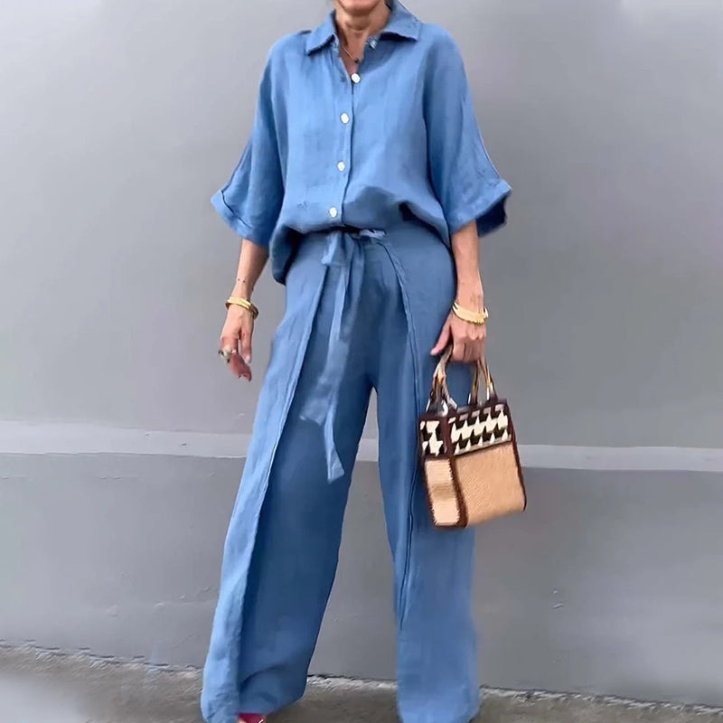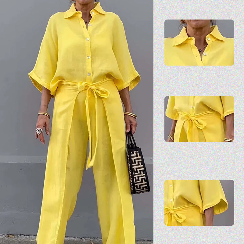 Sommerendverkauf🌸2-teiliges Set mit Oberteil mit Revers und Kordelzug