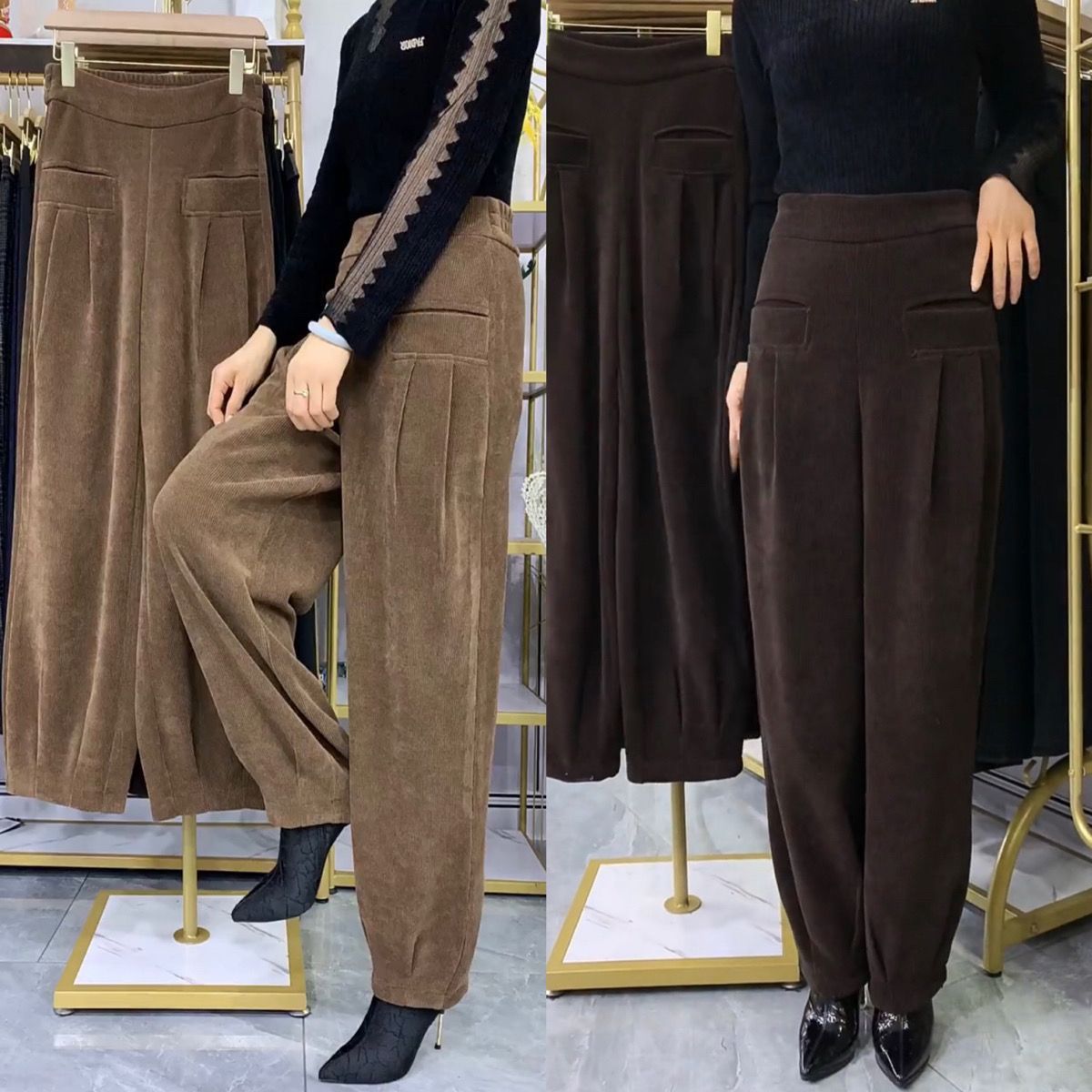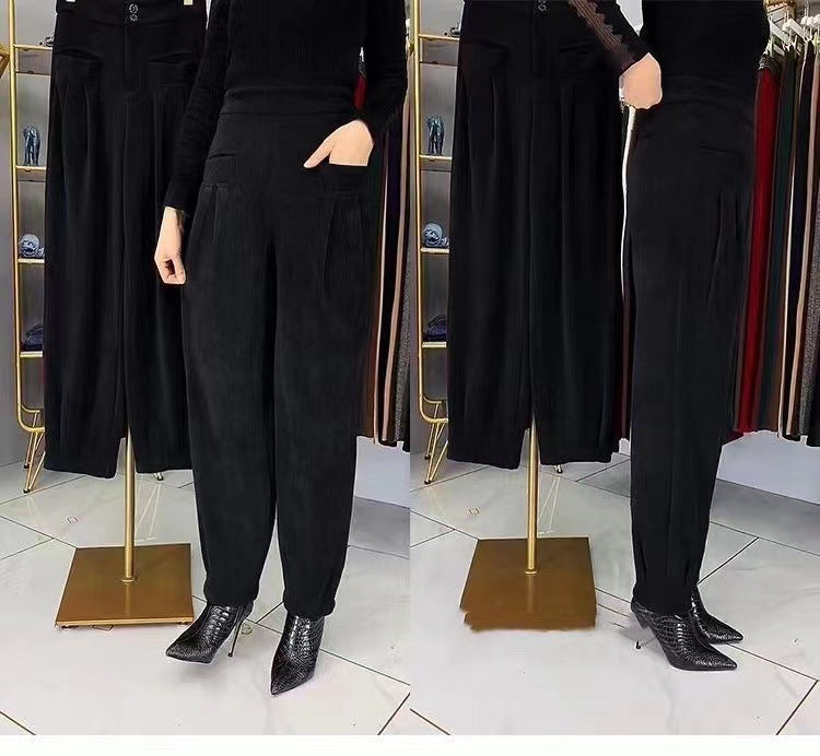 1 * Vintage-Plissee-Harems-Cordsamt mit hoher Taille für Damen